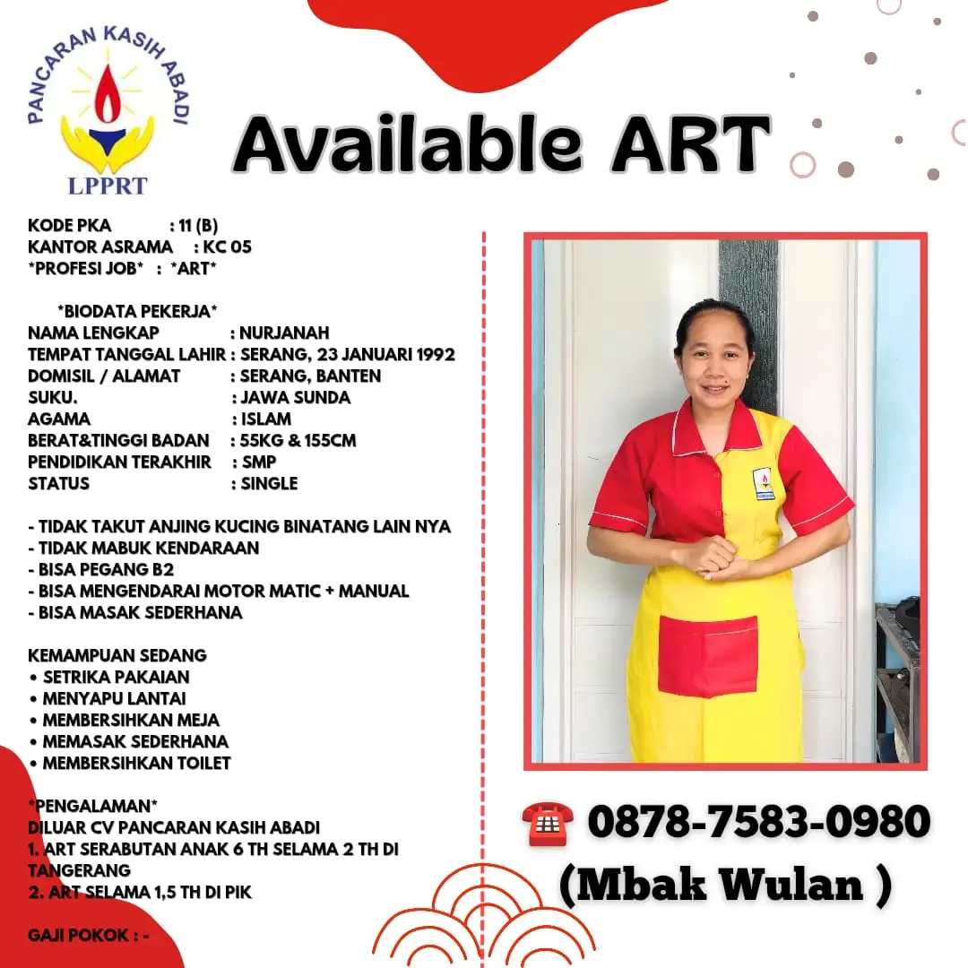 Asisten Rumah Tangga Hubungi untuk Avelania Nelan Detail Avelania NelanDesita Upik Kristanti