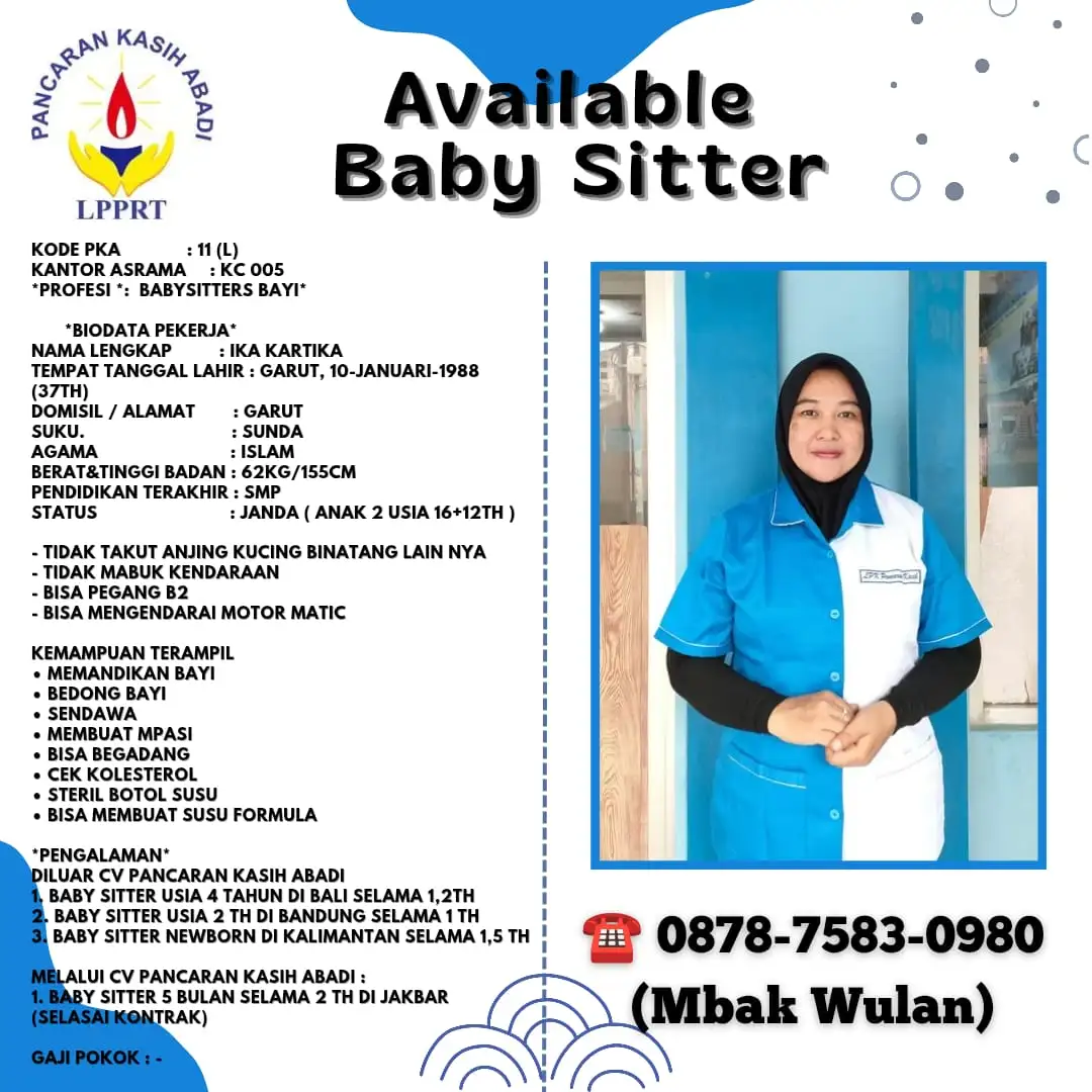 Baby Sitter Profesional Hubungi untuk Ika Kartika Detail Ika KartikaSiti Nurfadilah